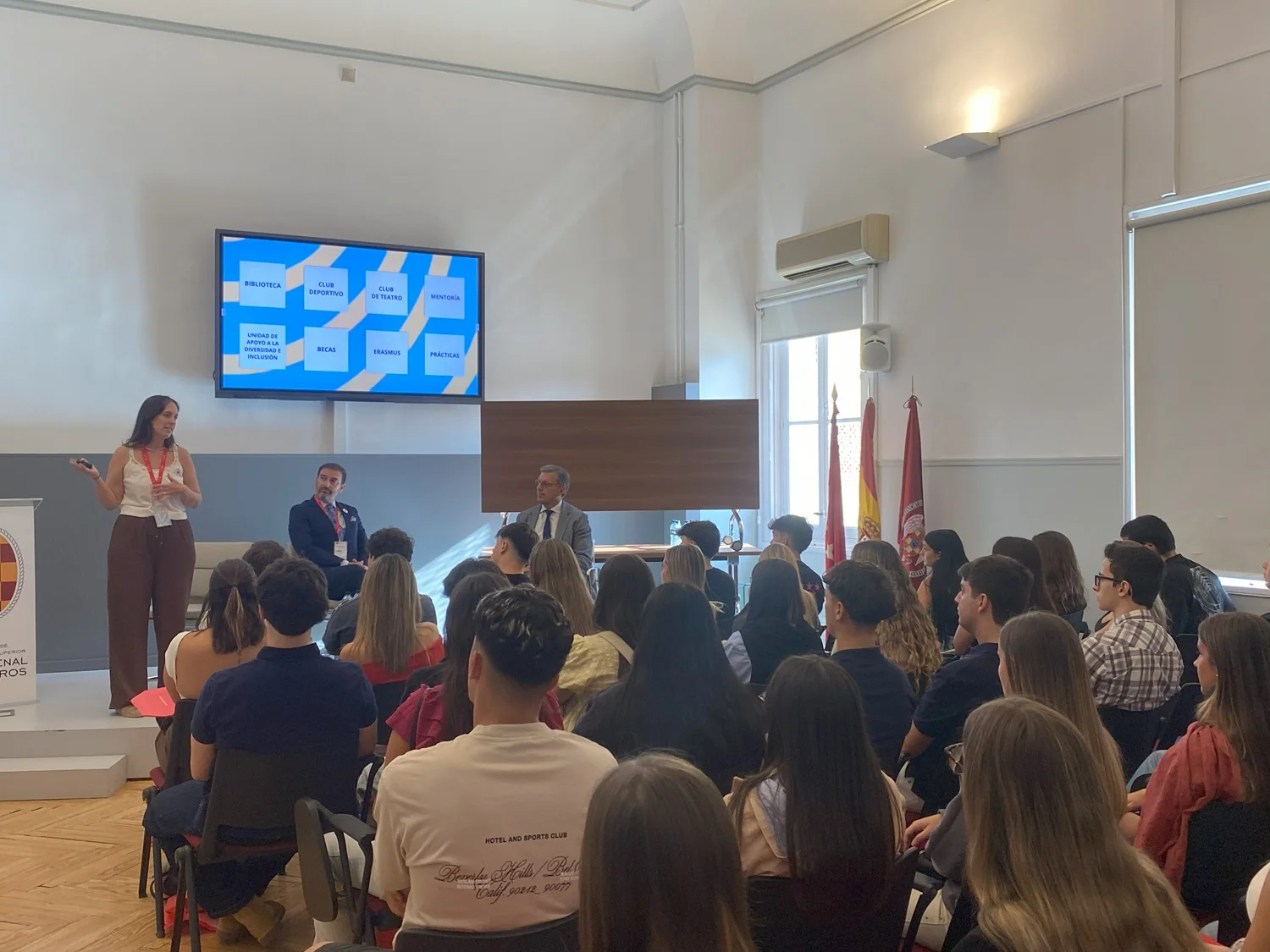 De cara a fomentar la integración de los nuevos estudiantes, Ana Esquina Panizo, docente de Derecho y responsable del departamento de Calidad y Becas, junto con Clara Amate y Marta Ruiz-Serrano, orientadoras académicas, presentaron todos los servicios del CES Cardenal Cisneros y dinamizaron cada una de las sesiones mediante una experiencia grupal que conectaba las motivaciones de los primeros días de la vida universitaria, en la que los estudiantes se agruparon para compartir sus expectativas e inquietudes sobre la vida universitaria.